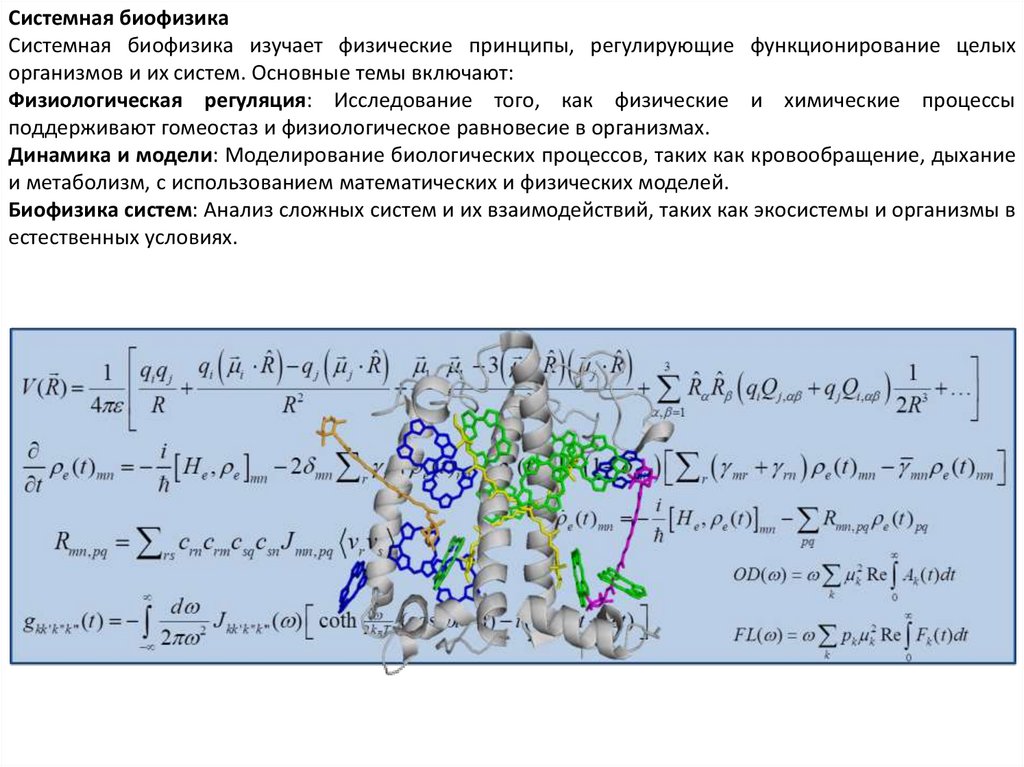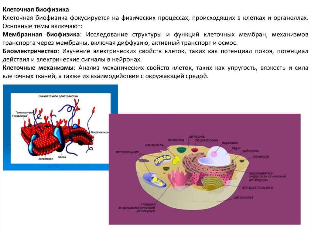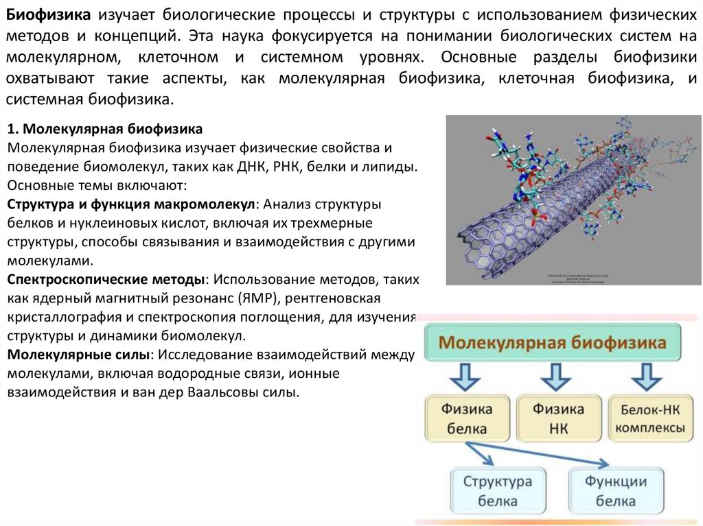 охватывают такие аспекты, как молекулярная биофизика, клеточная биофизика, и