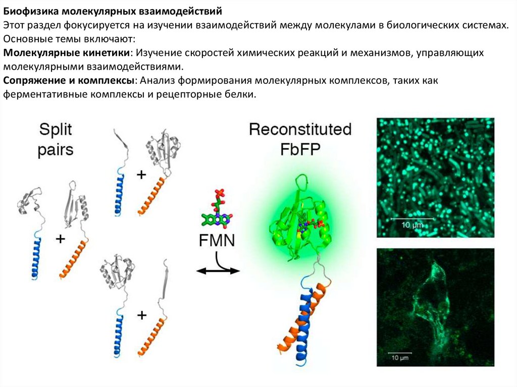 Биофизика молекулярных взаимодействийЭтот раздел фокусируется на изучении взаимодействий между молекулами в биологических системах.