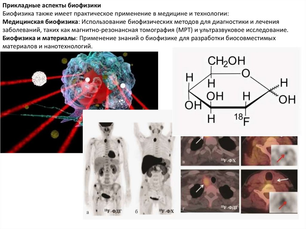 Прикладные аспекты биофизикиБиофизика также имеет практическое применение в медицине и технологии: