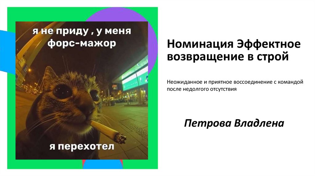 Номинация Эффектноевозвращение в строй