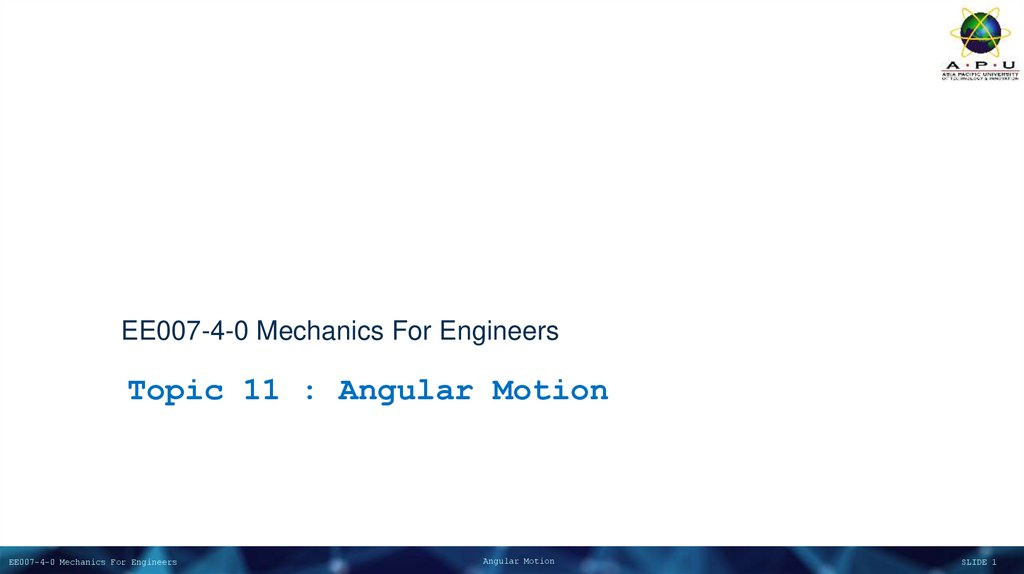 EE007-4-0 Mechanics For EngineersTopic 11 : Angular Motion