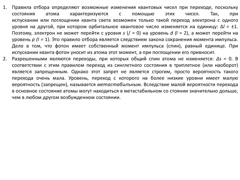 1. Правила отбора определяют возможные изменения квантовых чисел при переходе, посколькусостояния