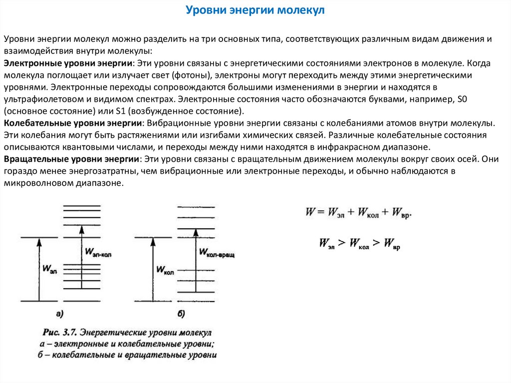 Уровни энергии молекулУровни энергии молекул можно разделить на три основных типа, соответствующих различным видам движения и
