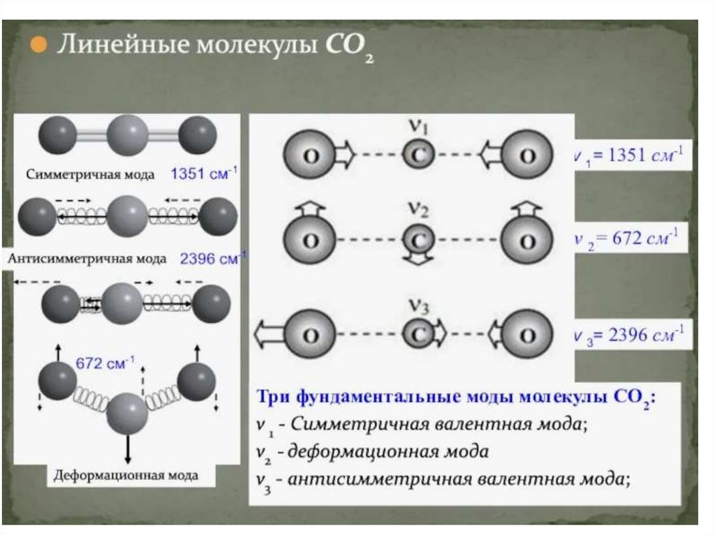 Эти колебания могут быть растяжениями или изгибами химических связей. Различные колебательные состояния