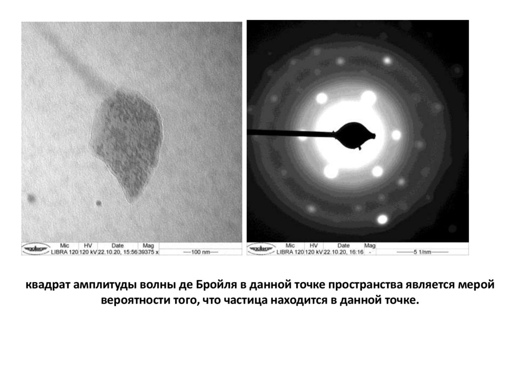 квадрат амплитуды волны де Бройля в данной точке пространства является меройвероятности того, что частица находится в данной точке.