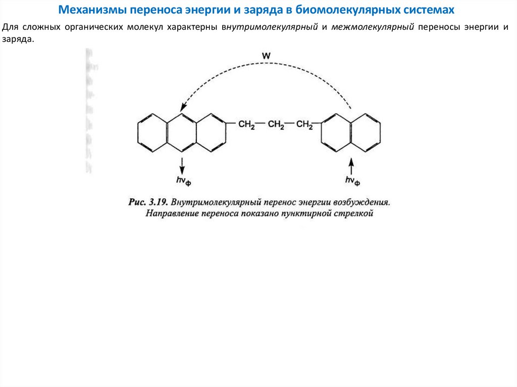 Механизмы переноса энергии и заряда в биомолекулярных системахДля сложных органических молекул характерны внутримолекулярный и межмолекулярный переносы энергии и