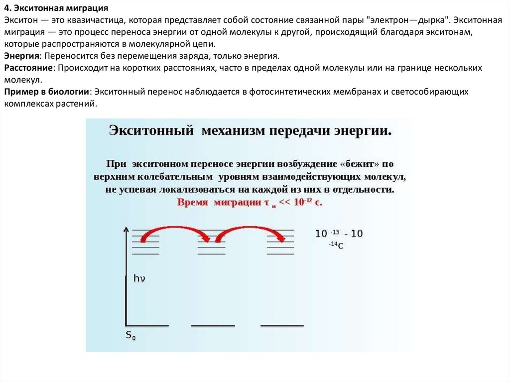 миграция — это процесс переноса энергии от одной молекулы к другой, происходящий благодаря экситонам,