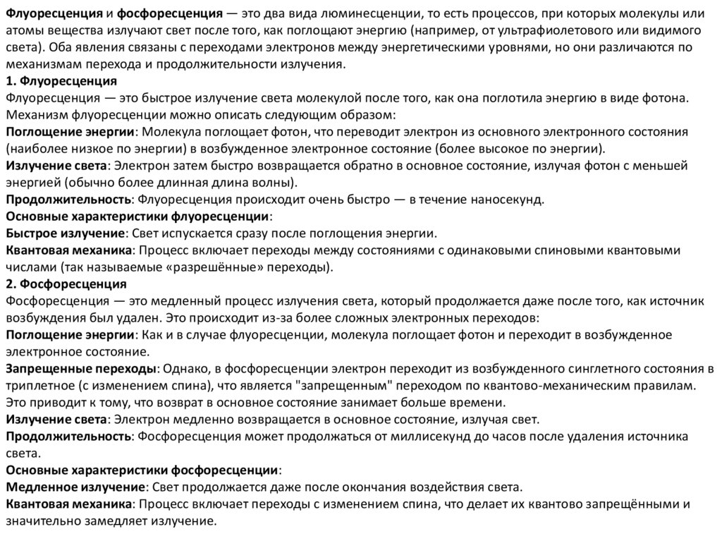 Продолжительность: Флуоресценция происходит очень быстро — в течение наносекунд.