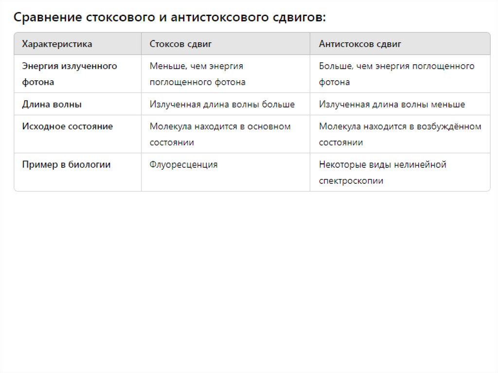 Поглощение энергии: Как и в случае флуоресценции, молекула поглощает фотон и переходит в возбужденное