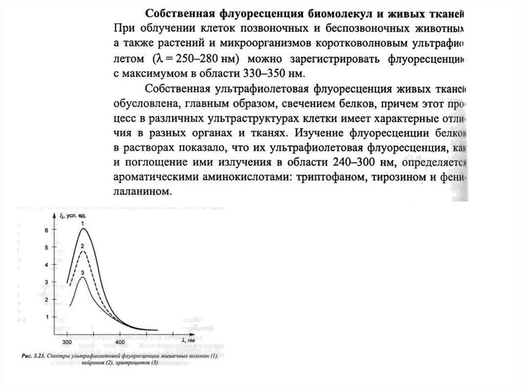 Флуоресценция — это быстрое излучение света молекулой после того, как она поглотила энергию в виде фотона.