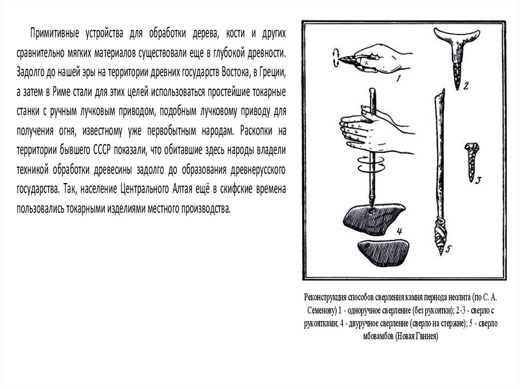 Примитивные устройства для обработки дерева, кости и другихсравнительно мягких материалов существовали еще в глубокой древности.