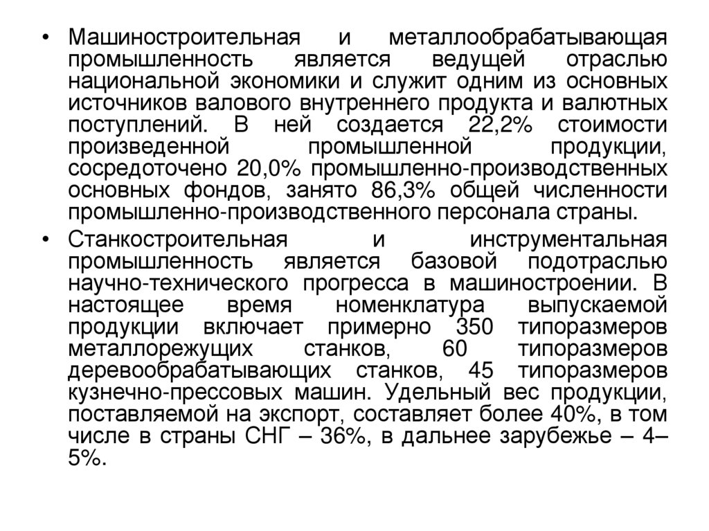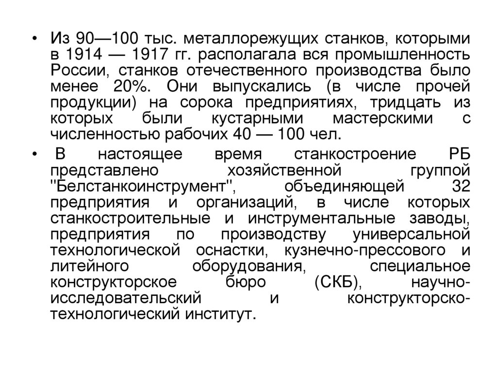• Из 90—100 тыс. металлорежущих станков, которымив 1914 — 1917 гг. располагала вся промышленность