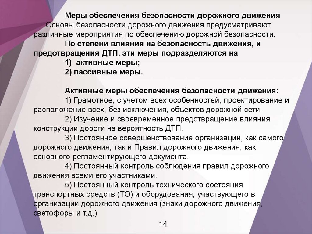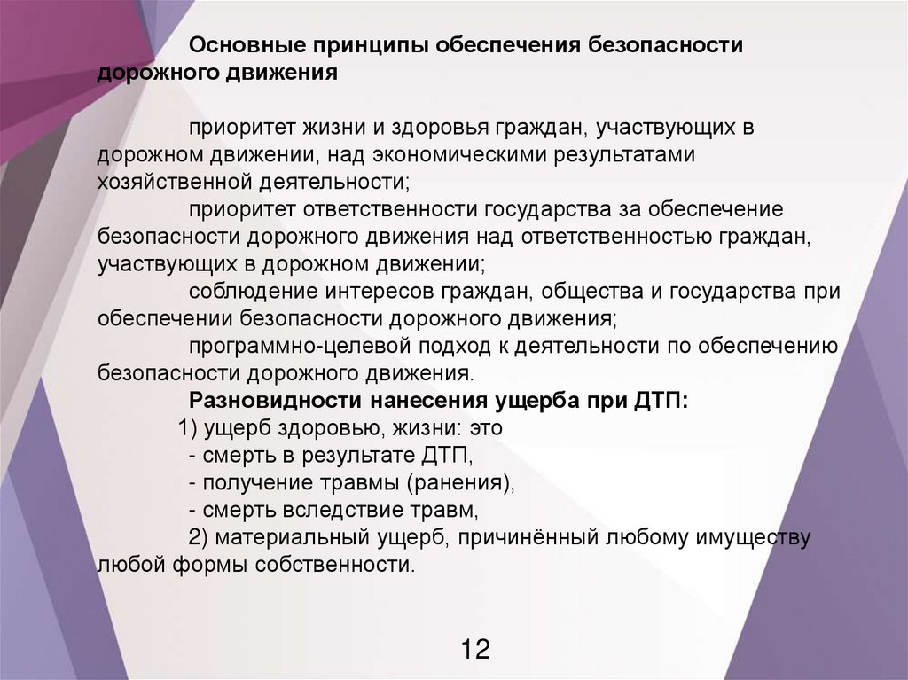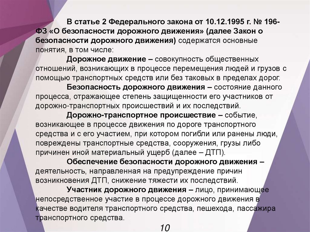 В статье 2 Федерального закона от 10.12.1995 г. № 196ФЗ «О безопасности дорожного движения» (далее Закон обезопасности дорожного движения) содержатся основные