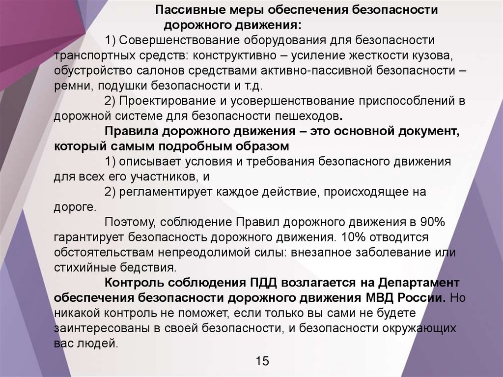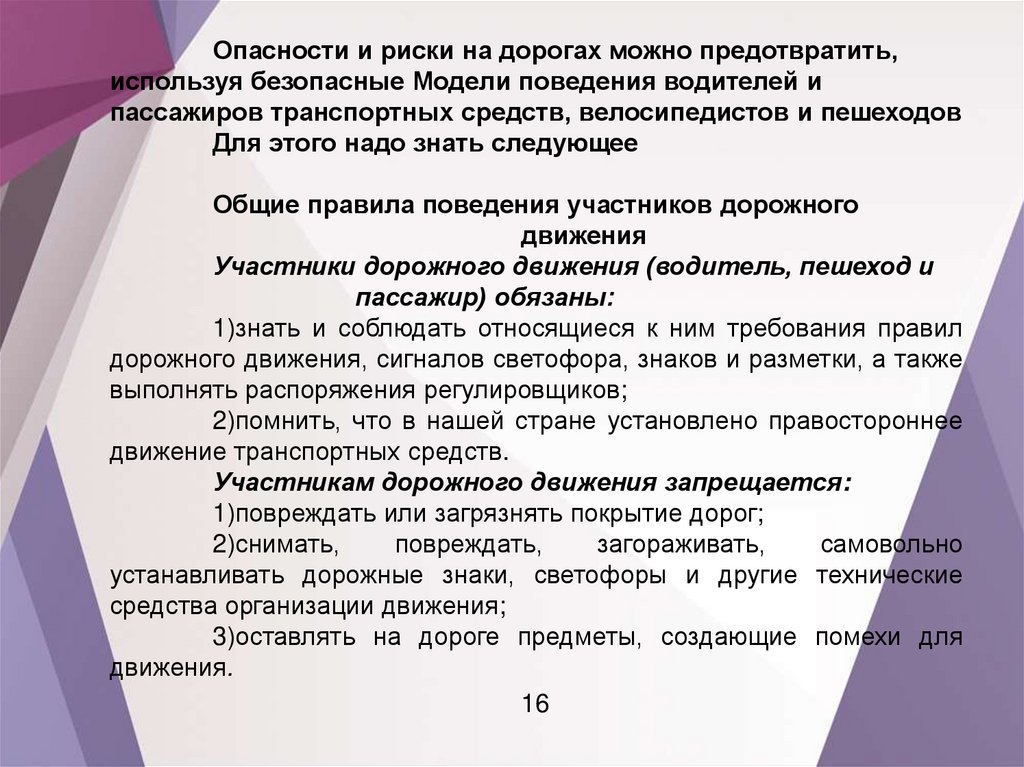 поведения участников дорожного движения при организации БЕЗОПАСНОГО