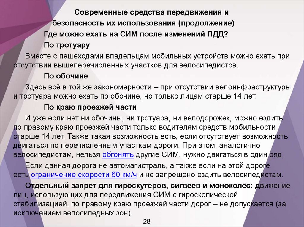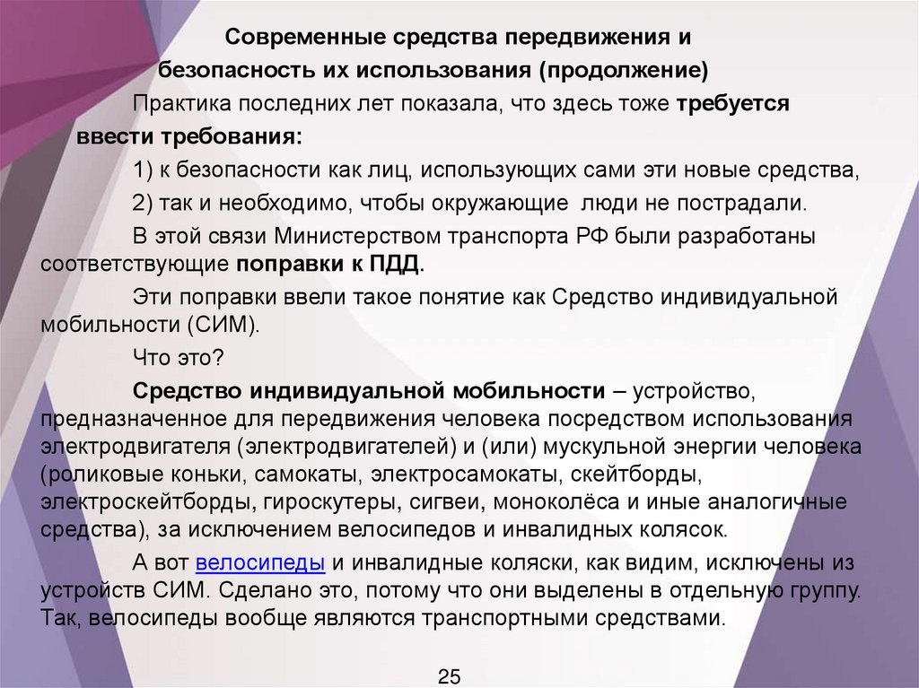 средство индивидуальной мобильности, в этих случаях должны следовать по