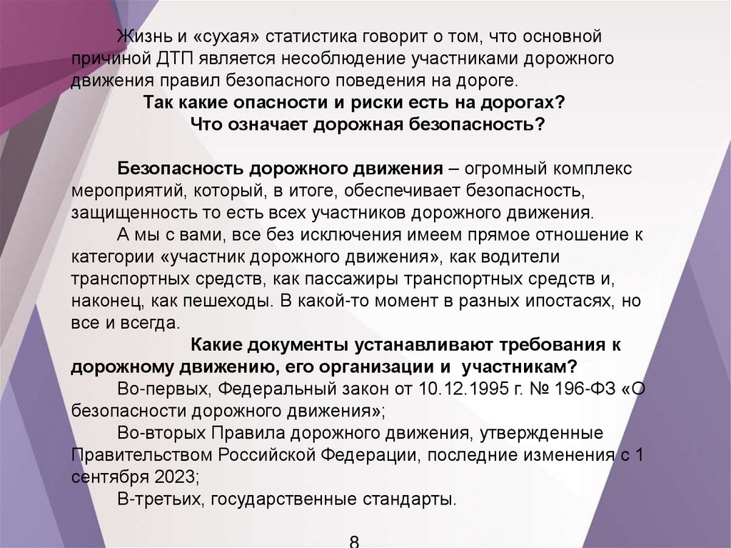 Жизнь и «сухая» статистика говорит о том, что основнойпричиной ДТП является несоблюдение участниками дорожного