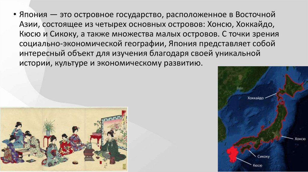 социально-экономической географии, Япония представляет собой