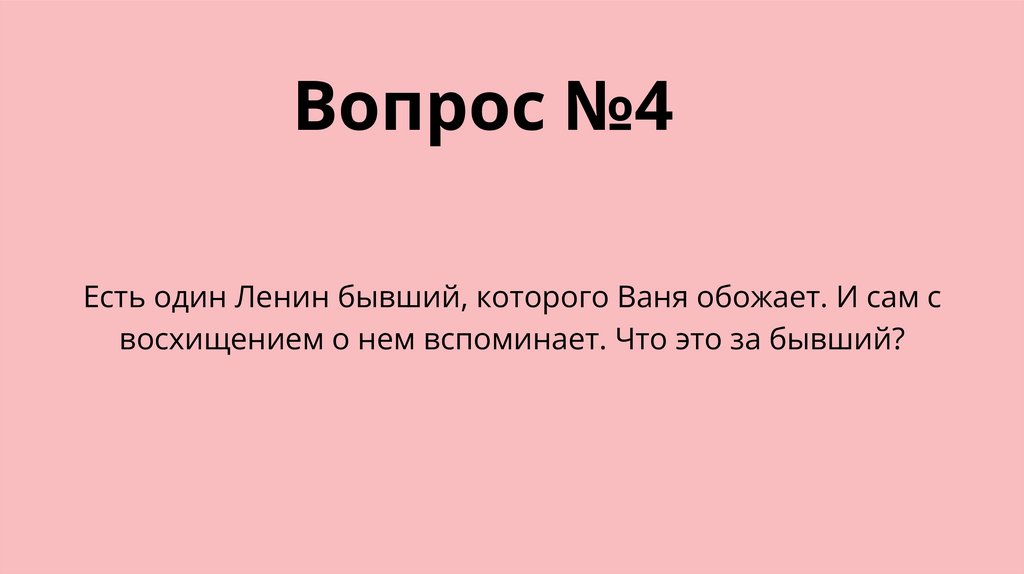 Вопрос №4Есть один Ленин бывший, которого Ваня обожает. И сам с