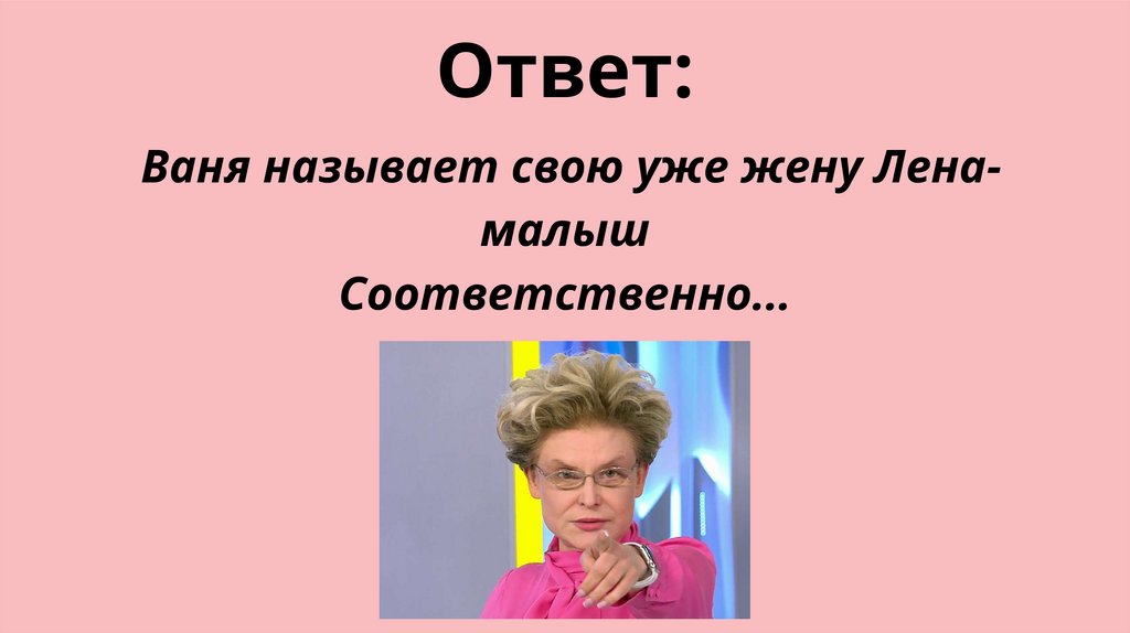 Ответ:Ваня называет свою уже жену Ленамалыш