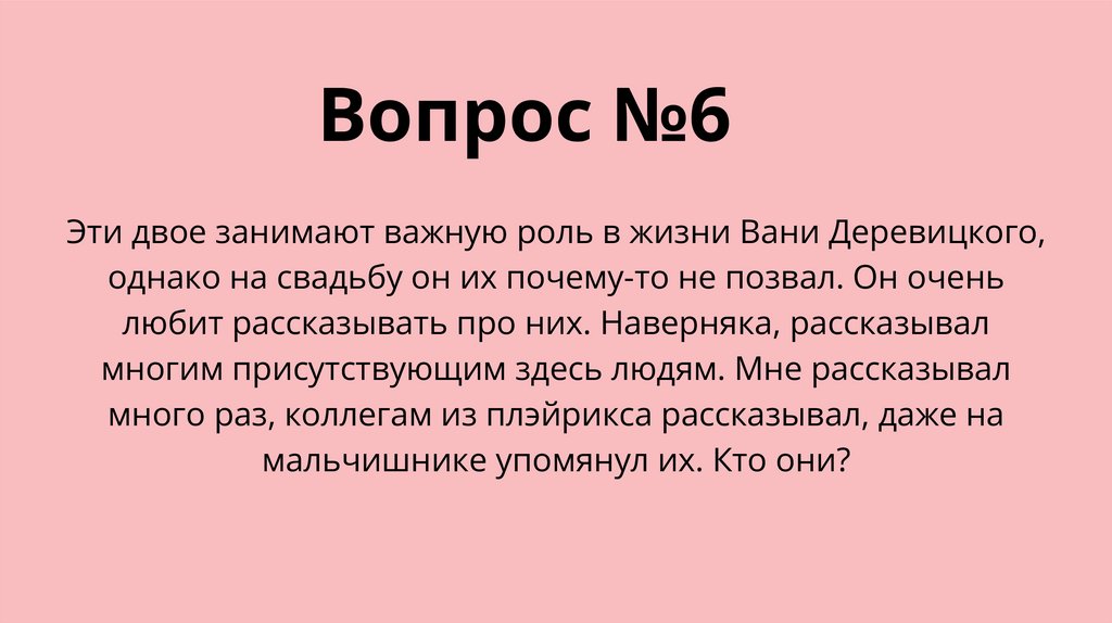 Вопрос №6Эти двое занимают важную роль в жизни Вани Деревицкого,