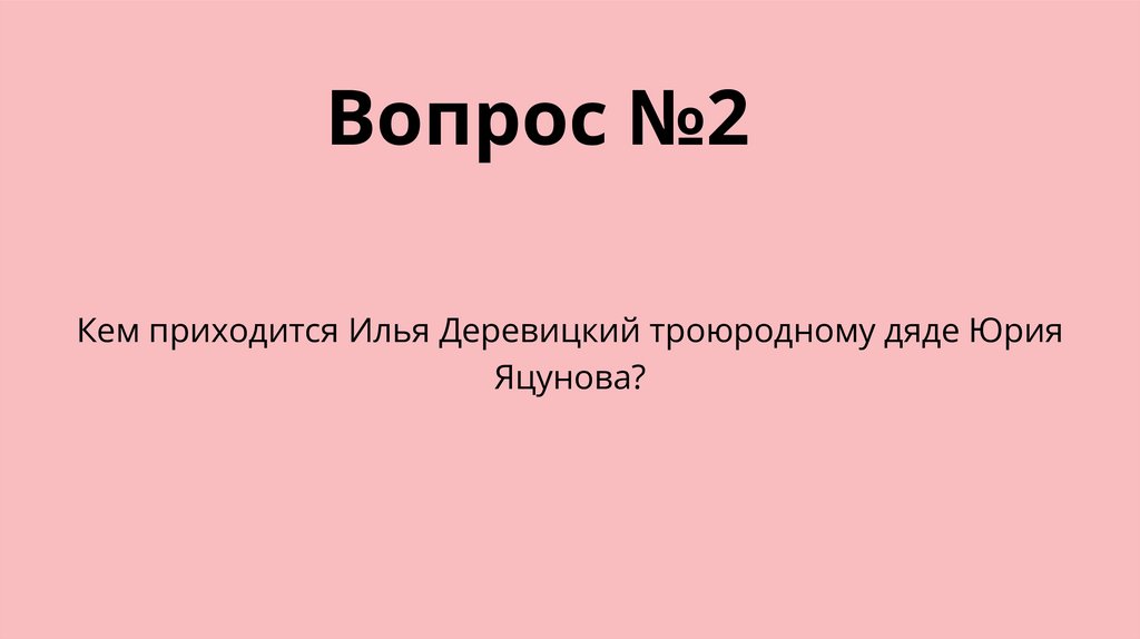 Вопрос №2Кем приходится Илья Деревицкий троюродному дяде Юрия