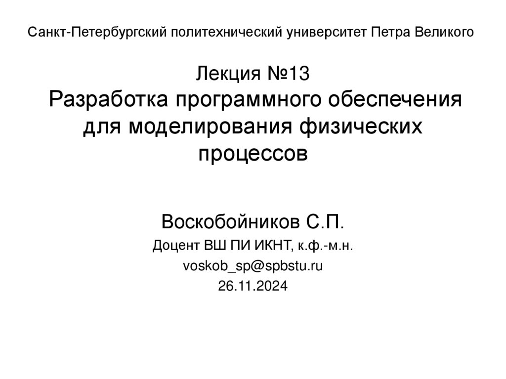 1. Лекция №13 Разработка программного обеспечения для моделирования физических процессов