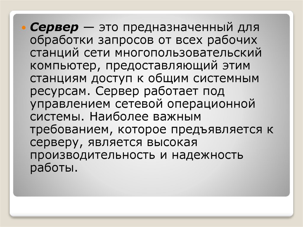серверу, является высокая