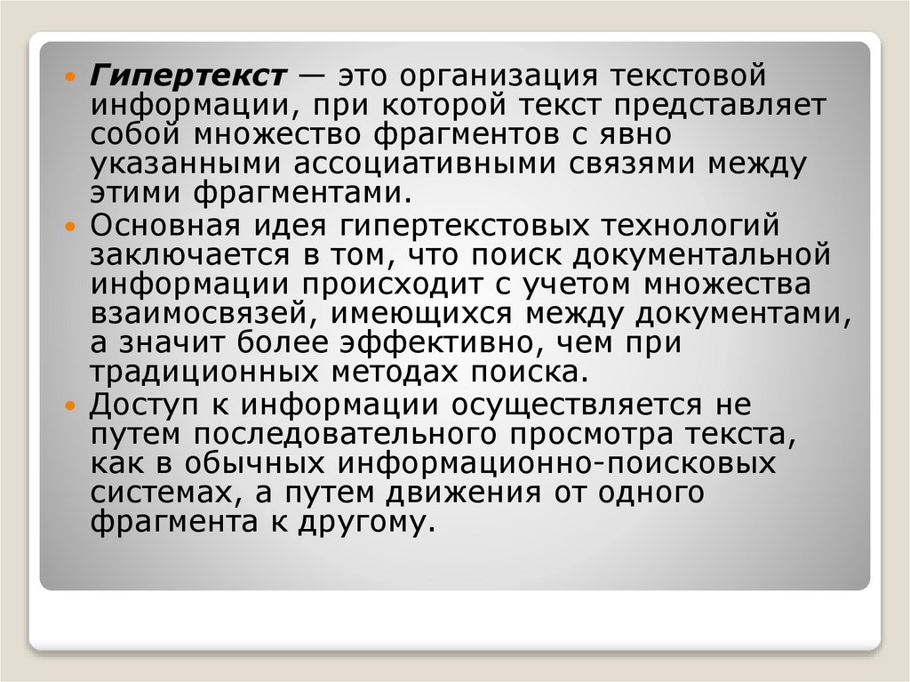 Гипертекст — это организация текстовойинформации, при которой текст представляет