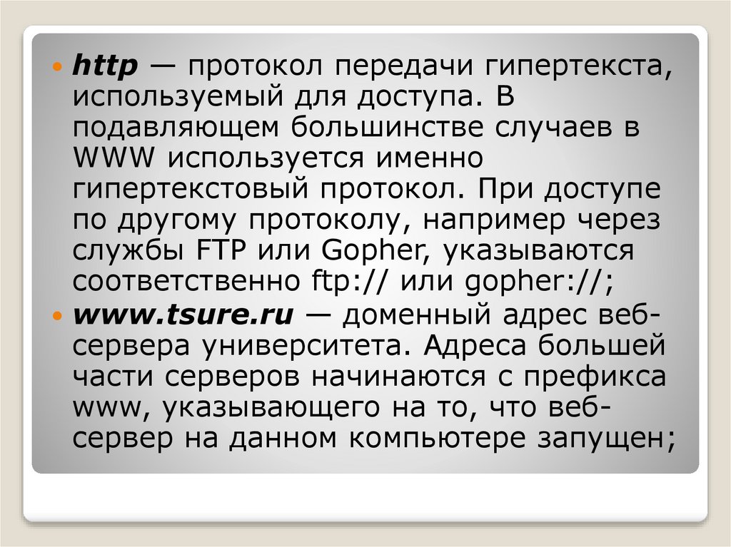 http — протокол передачи гипертекста,используемый для доступа. В