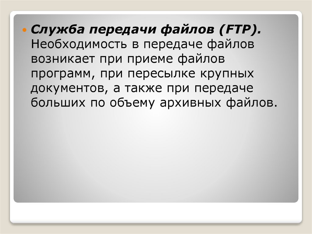Служба передачи файлов (FTP).Необходимость в передаче файлов