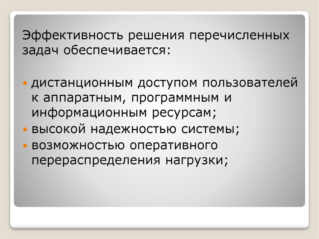 Эффективность решения перечисленныхзадач обеспечивается:
