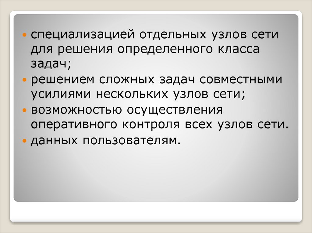 специализацией отдельных узлов сетидля решения определенного класса