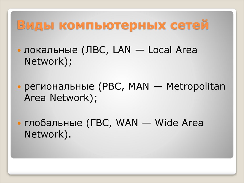 Виды компьютерных сетейлокальные (ЛВС, LAN — Local Area