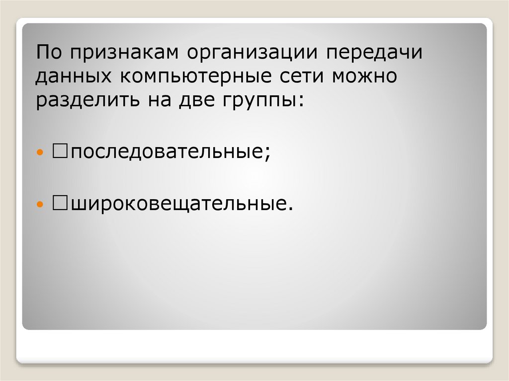 По признакам организации передачиданных компьютерные сети можно