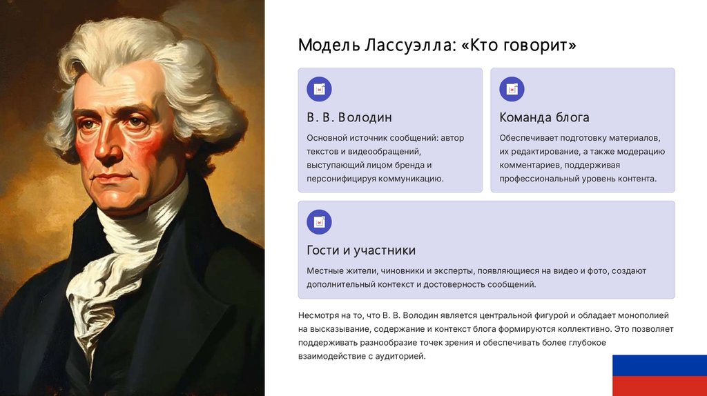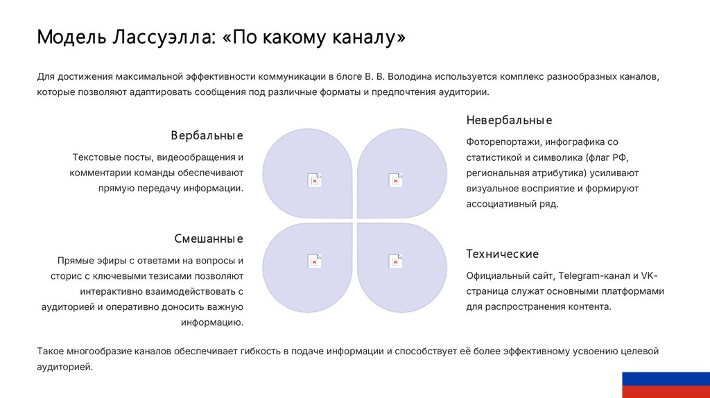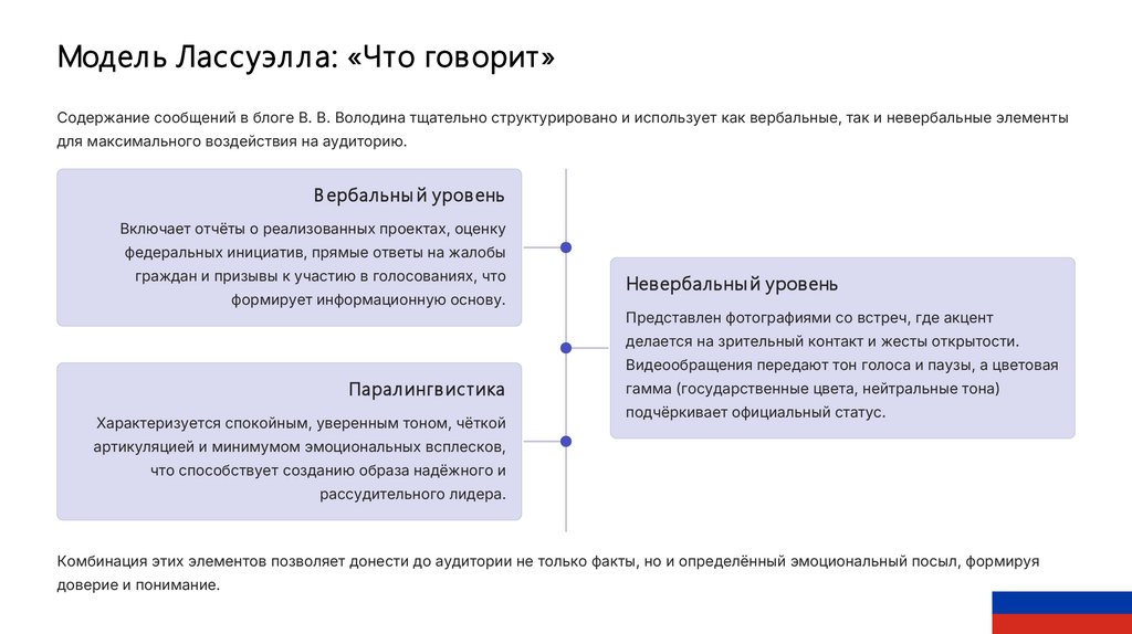 Модел ь Лассуэл л а: «Что говорит»Содержание сообщений в блоге В. В. Володина тщательно структурировано и использует как вербальные, так и невербальные элементы
