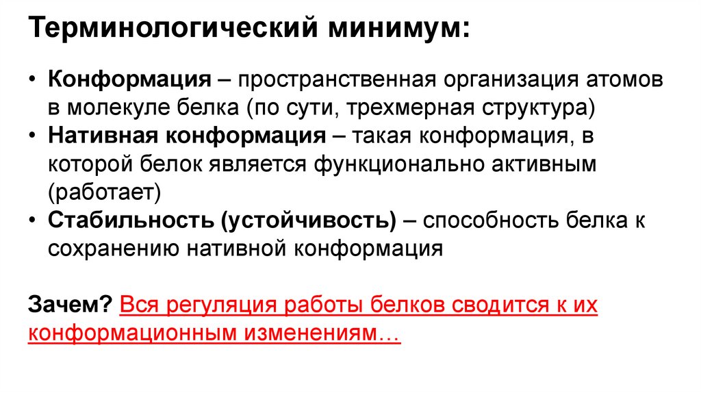 Терминологический минимум:• Конформация – пространственная организация атомов