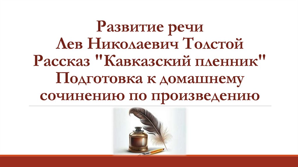1. Развитие речи Лев Николаевич Толстой Рассказ "Кавказский пленник" Подготовка к домашнему сочинению по произведению