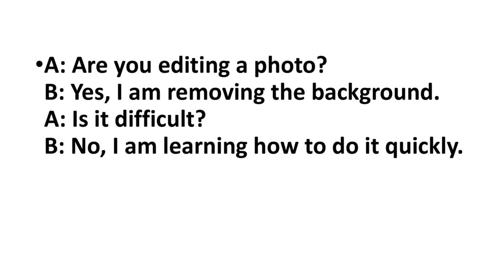 • A: Kompüterdə nə edirsən?B: Mən Photoshop-da şəkil redaktə edirəm.
