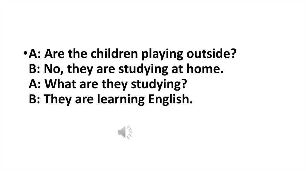 •A: Are the children playing outside?B: No, they are studying at home.