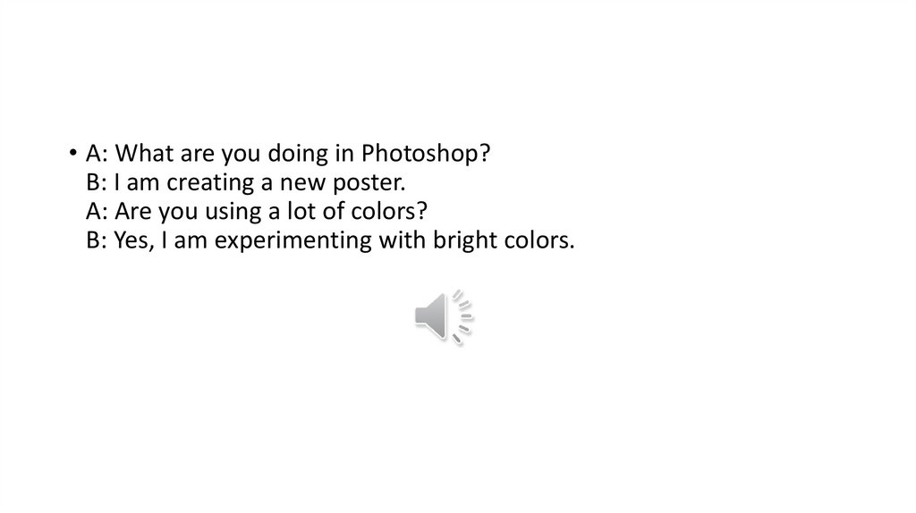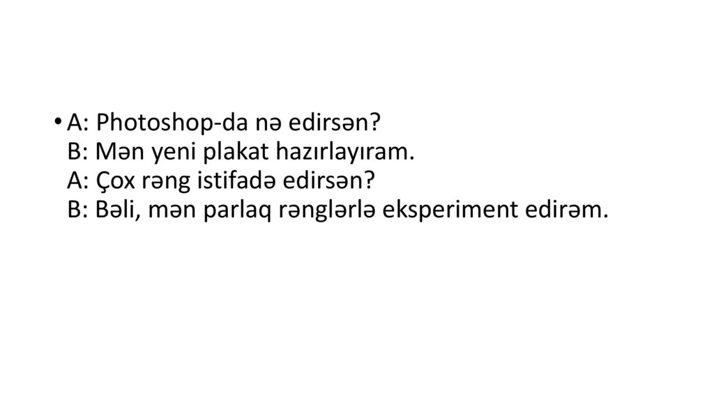 • A: Photoshop-da nə edirsən?B: Mən yeni plakat hazırlayıram.