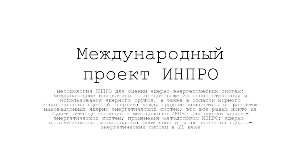 • Международный проект по инновационным ядернымреакторам и топливным циклам (International