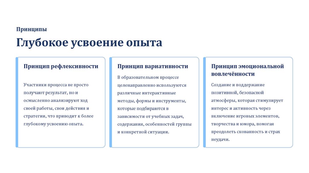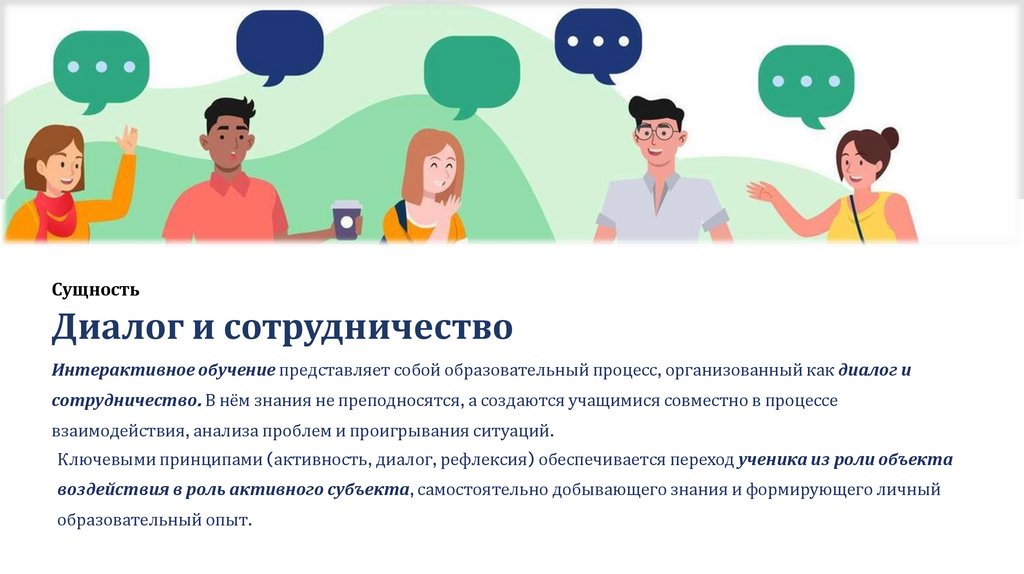 диалог, практическую деятельность, осмысление результатов и взаимосвязанность всех участников.