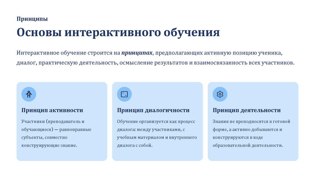 Интерактивное обучение строится на принципах, предполагающих активную позицию ученика,