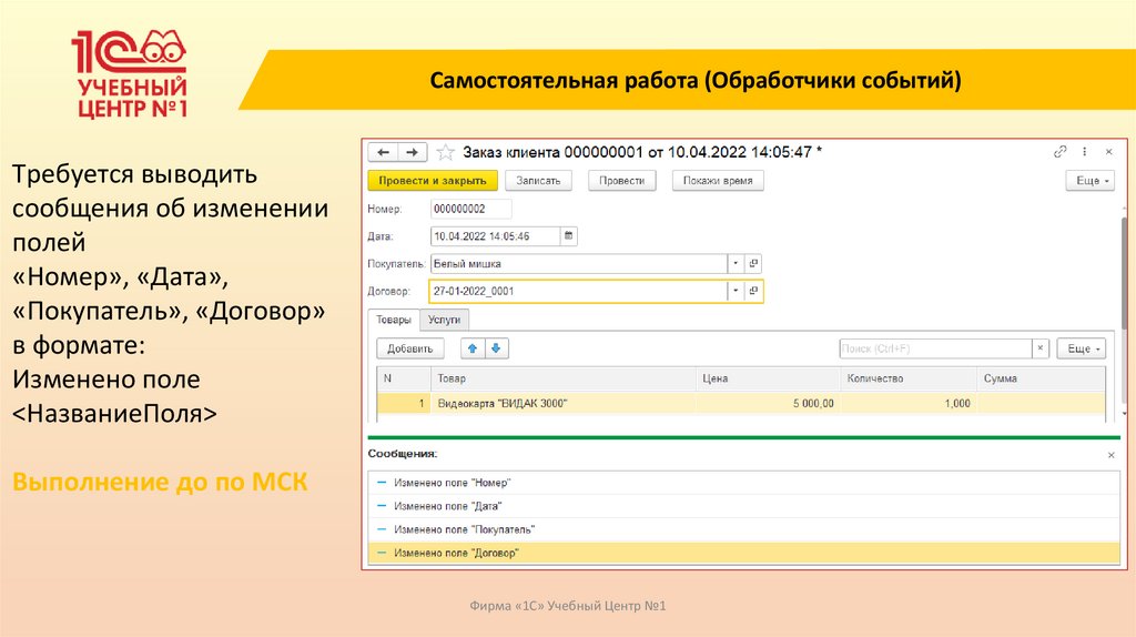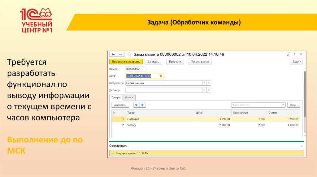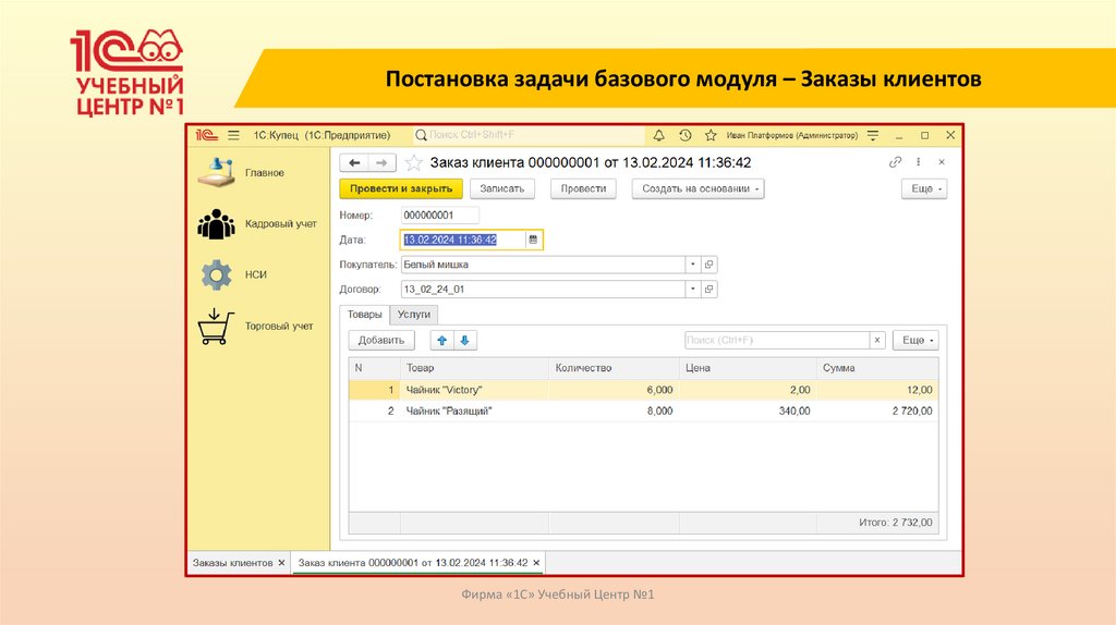 Постановка задачи базового модуля – Заказы клиентовФирма «1С» Учебный Центр №1