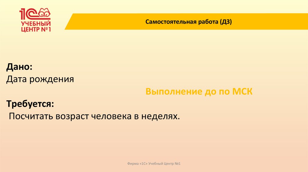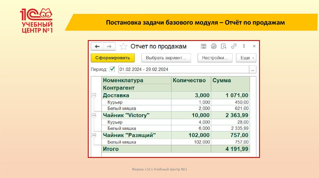 Постановка задачи базового модуля – Отчёт по продажамФирма «1С» Учебный Центр №1