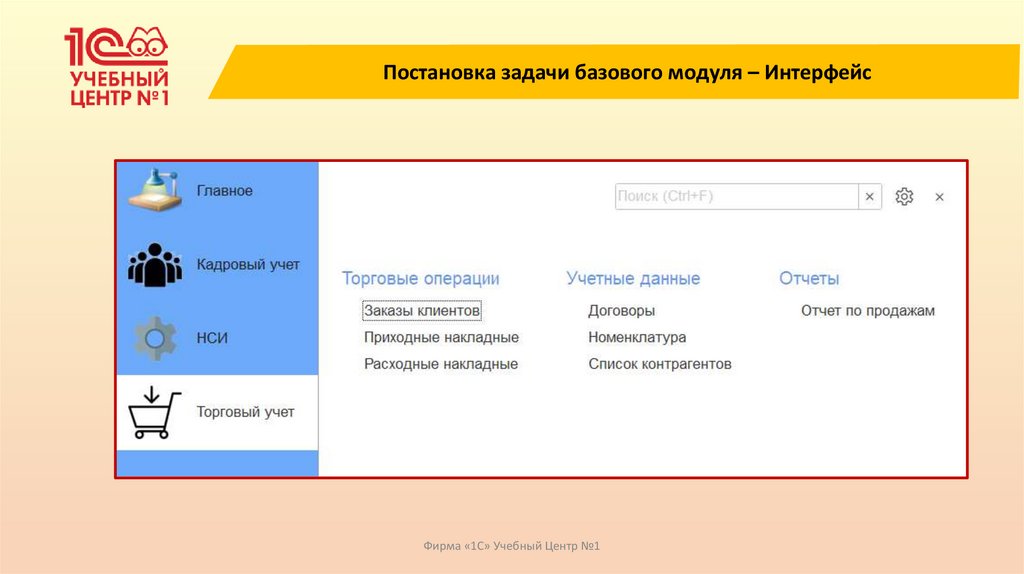 Постановка задачи базового модуля – ИнтерфейсФирма «1С» Учебный Центр №1