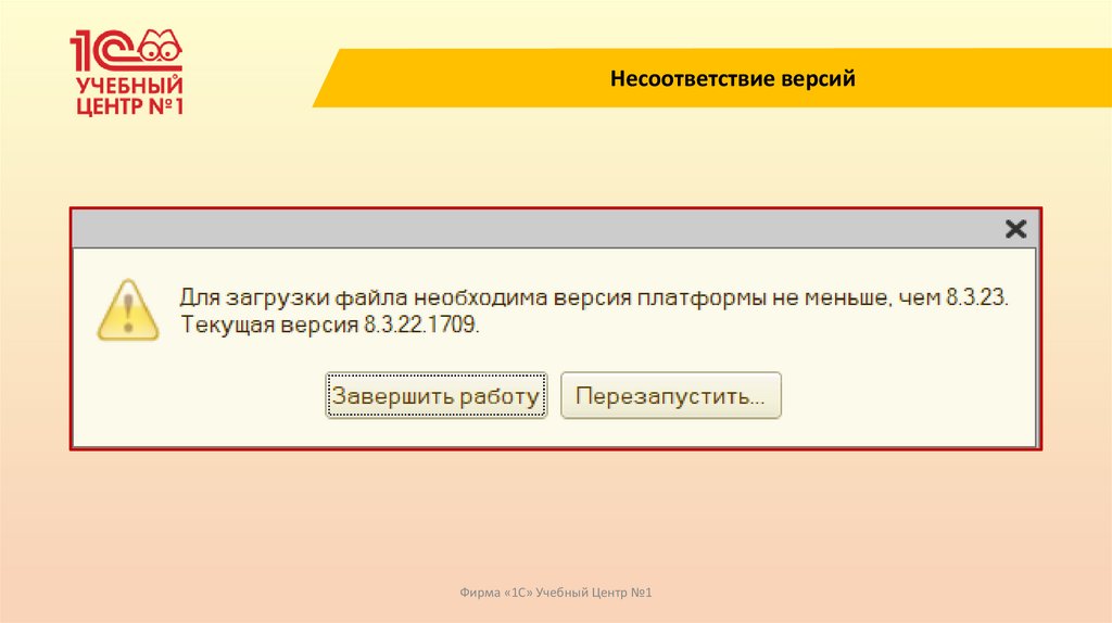 Несоответствие версийФирма «1С» Учебный Центр №1