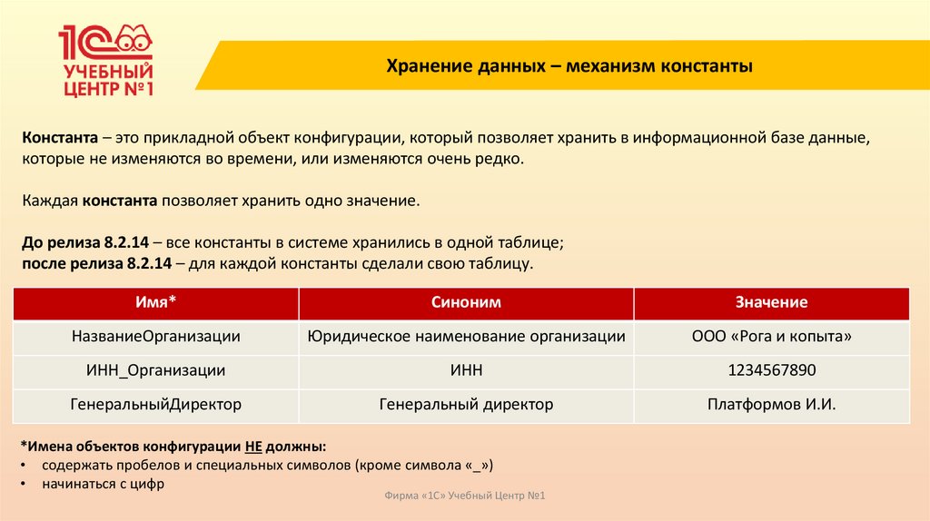 До релиза 8.2.14 – все константы в системе хранились в одной таблице;