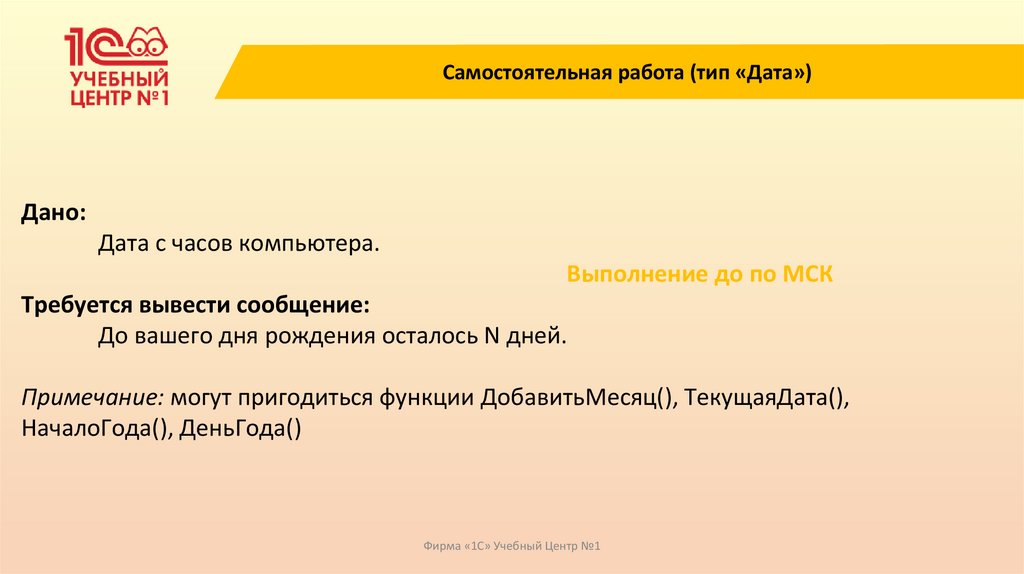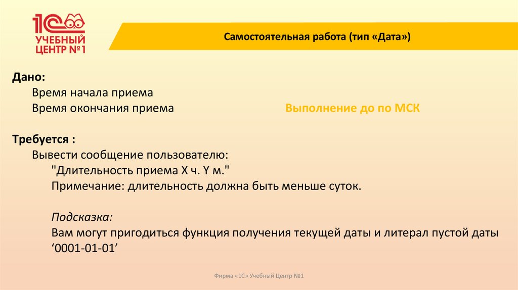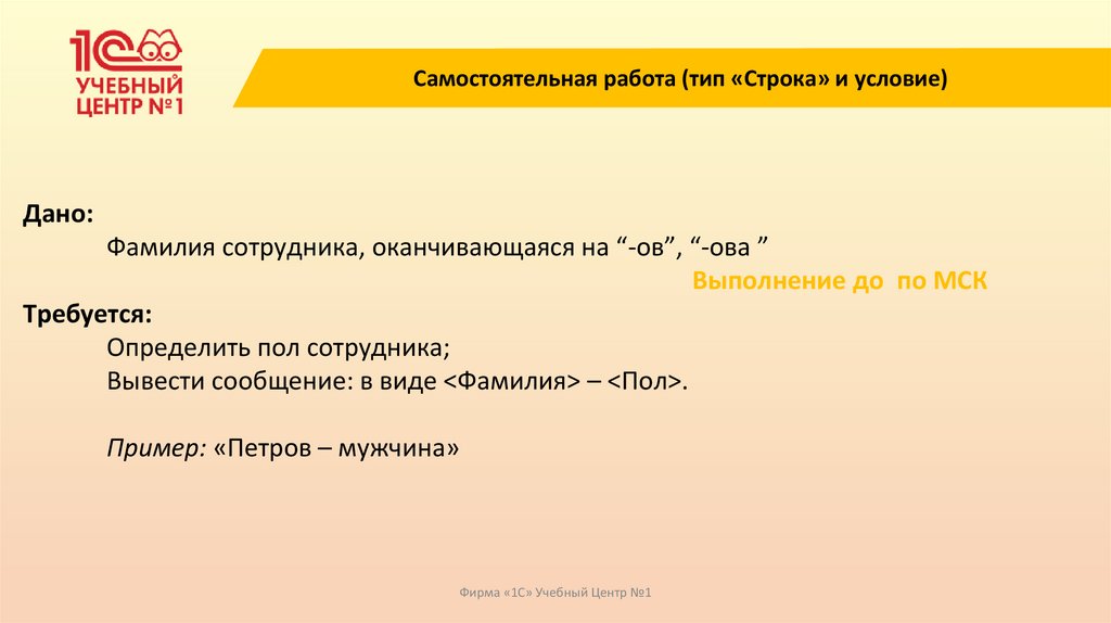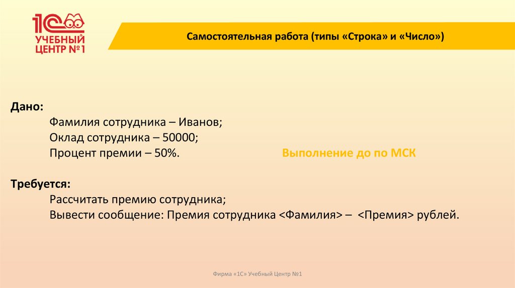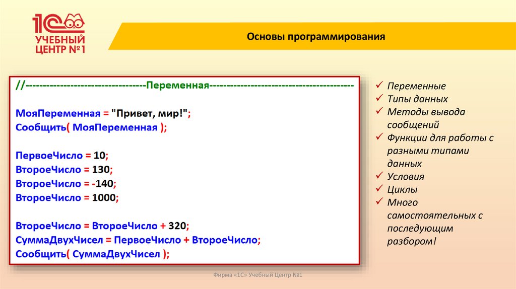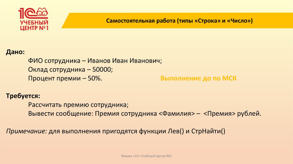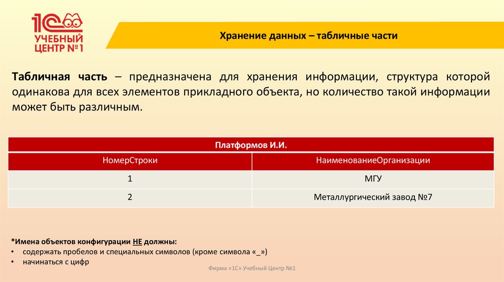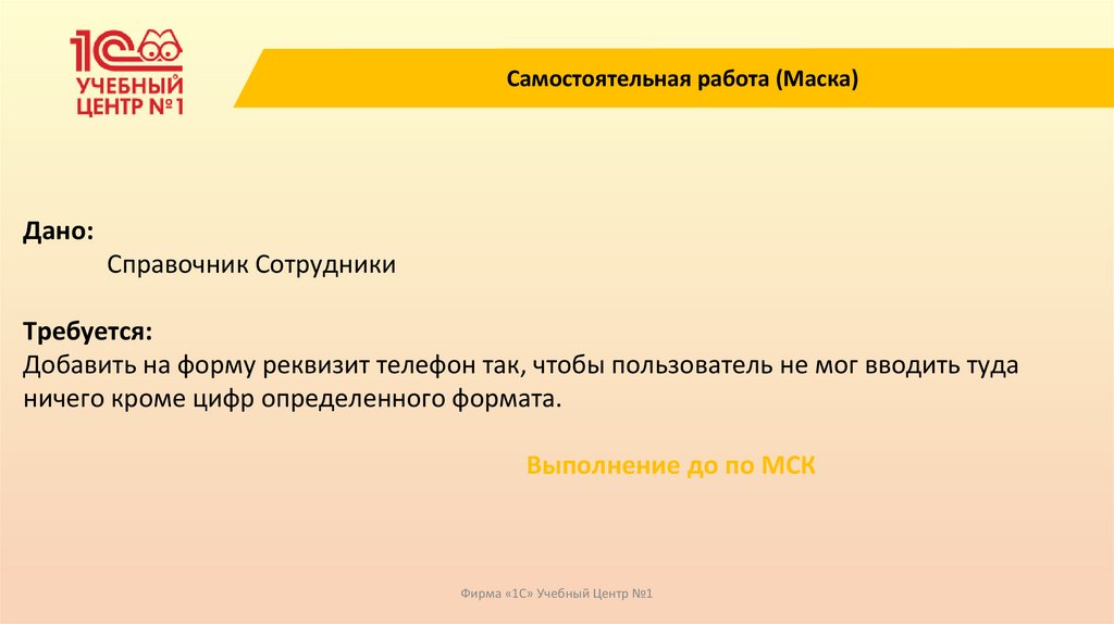 Постановка задачи базового модуля – ПользователиФирма «1С» Учебный Центр №1