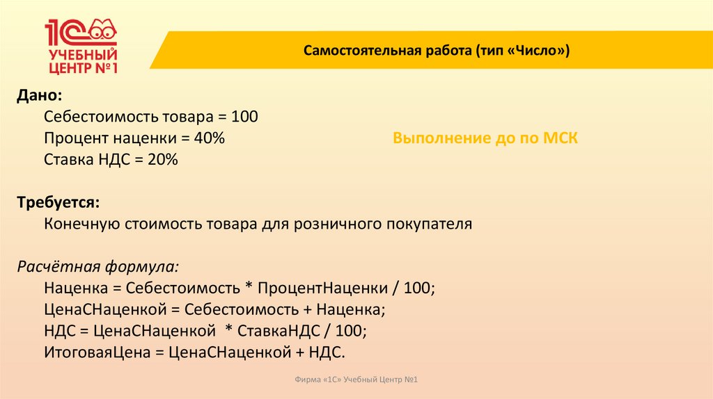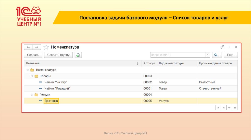 Постановка задачи базового модуля – Список товаров и услугФирма «1С» Учебный Центр №1